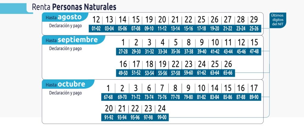 2. Si tu resultado es afirmativo consulta la fecha en el calendario Tributario de la DIAN, debes revisar los últimos dos dígitos de tu cédula y encontrar la fecha límite.